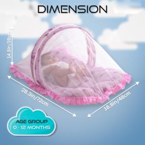 HOGOPOGO Baby Mosquito Net with Cotton Bed | 0–12M | Pink | Foldable & Soft