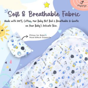 HOGOPOGO Mini Cotton Baby Bedding Set – Panda Blue | Sleeping Bag & Net | 0–6M, 500 TC