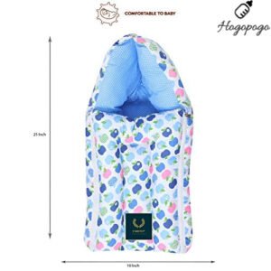 HOGOPOGO Cotton Born Baby Mattress with Net & Sleeping Bag – Apple Print, Blue (0–6M)