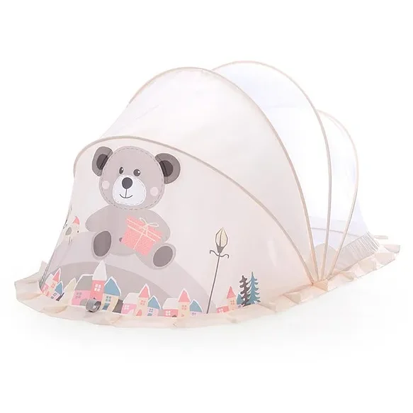 The Babyhug Foldable Mosquito Net Small Size Bear Theme – Beige is a compact, umbrella-style net designed to protect infants from insects. Its breathable fabric and playful bear design make it both functional and visually appealing for babies aged 0–12 months .