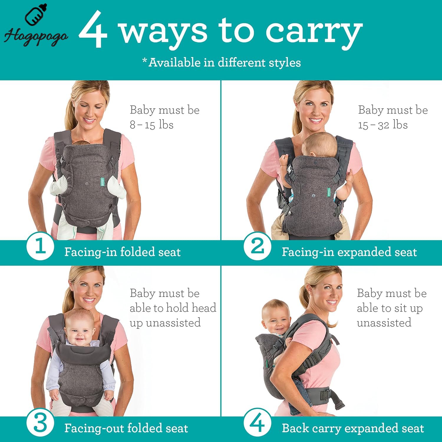 🧸 4-in-1 Carry Options – Face in (narrow/wide), face out, and back carry