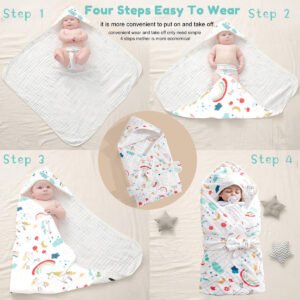 HOGOPOGO Muslin Swaddle Wrap Set of 3 | 100% Cotton | 100×100 cm | Rainbow Print